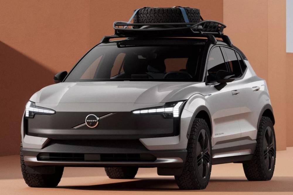 To νέο Volvo φτάνει τα 4.233 χλστ. μήκους και τα 2.650 χλστ. μεταξονίου, τη στιγμή που οι αντίστοιχοι αριθμοί του XC40 είναι 4.440 χλστ. και 2.702 χλστ. Οι 20άρες ζάντες κεντρίζουν τα βλέμματα, αλλά πολύ περισσότερο το κάνει η έκδοση Cross Country. Tο «σκληρό» EX30 ξεχωρίζει από τα πλαστικά προστατευτικά στη μάσκα, χαμηλά στις πλαϊνές πόρτες και το μέσο της 5ης, όπως και στον πίσω προφυλακτήρα, όμως τη μεγάλη διαφορά κάνουν η σχάρα οροφής και τα χωμάτινα ελαστικά. Οι τροχοί προσφέρονται σε 18 ή 19 ίντσες και βάφονται σε κατάμαυρο χρώμα, δημιουργώντας -μαζί με τα προστατευτικά- διχρωμία με το αμάξωμα.