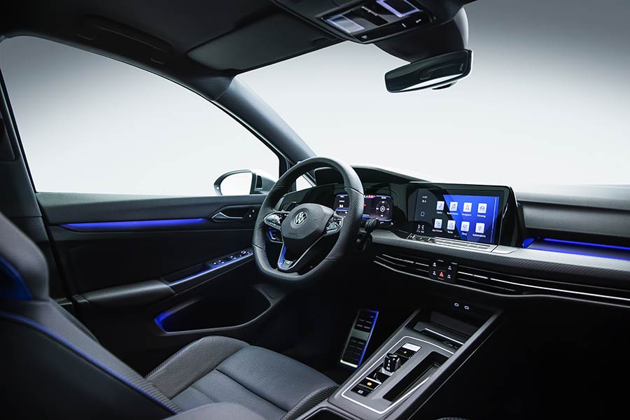 Στο εσωτερικό κυριαρχεί ο μπλε ambient φωτισμός και η οθόνη των 10 ίντσων στο κέντρο του ταμπλό, που φιλοξενεί τις λειτουργίες του συστήματος πολυμέσων Discover Pro. Ο ψηφιακός πίνακας οργάνων Digital Cockpit, τα μπάκετ καθίσματα με τις μπλε ραφές και τα σήματα «R», αλλά και η αλουμινένια πενταλιέρα, συνδυάζουν την τεχνολογία με την αγωνιστική αίσθηση. Μια αίσθηση που εντείνεται στο μέγιστο από την υποδομή…