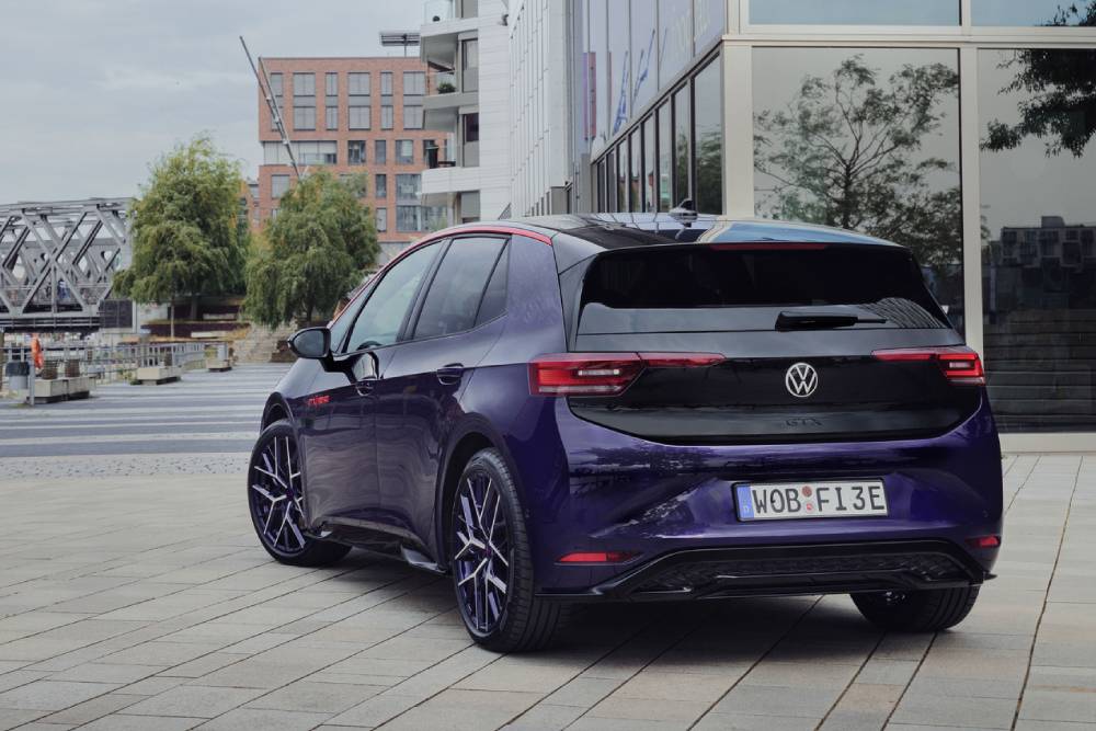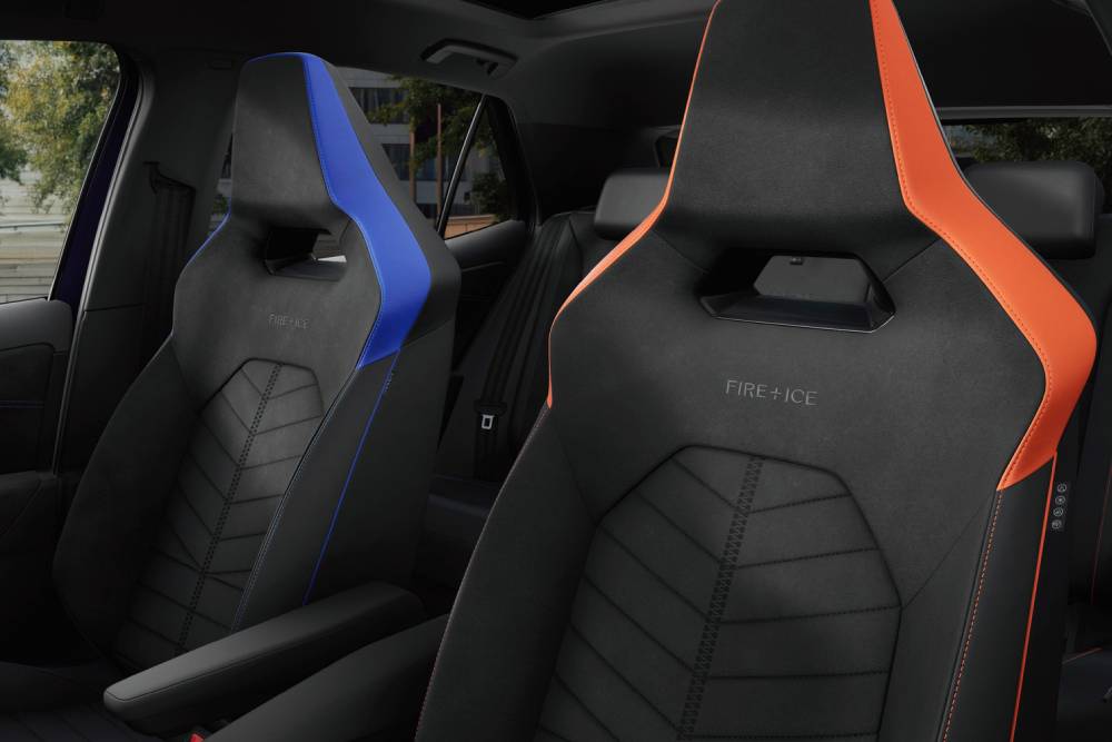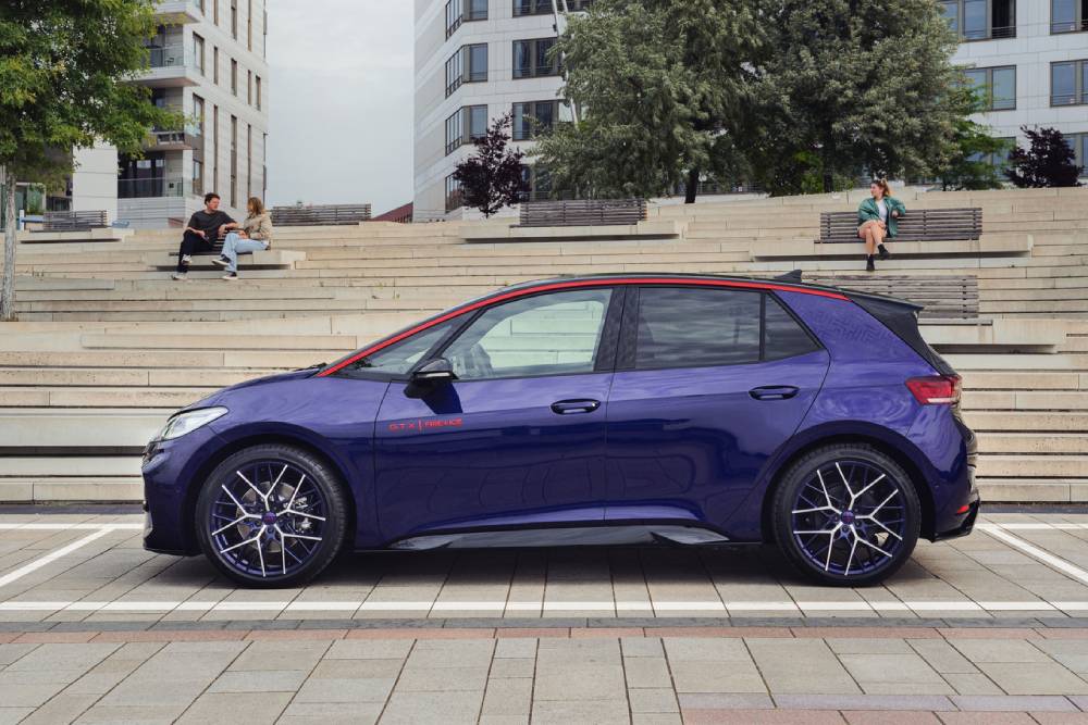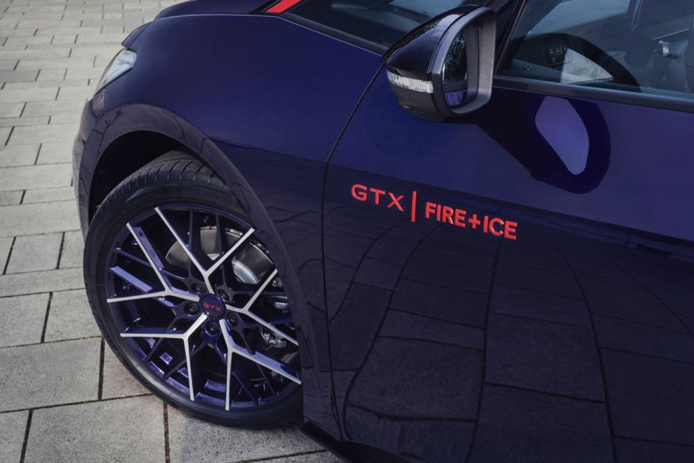 To ID.3 GTX Fire + Ice παρουσιάστηκε πρώτη φορά πέρσι ως πρωτότυπο, στο καθιερωμένο ID. Meeting, μοιράζοντας πινελιές… χρονολογίας 1990. Τότε που ένα άλλο VW φόραγε τα λογότυπα «Fire + Ice», το Golf MK2 GTI. Όπως τότε, έτσι και τώρα η ειδική έκδοση εξελίχθηκε σε συνεργασία με τον σχεδιαστή μόδας Willy Bogner. Το μωβ και περλέ Electric Violet χρώμα τραβάει όλα τα βλέμματα και αλλάζει την εμφάνιση ανάλογα του πώς το χτυπάει ο ήλιος, συνδυαζόμενο με γραφικά στο πλάι και μαύρη οροφή, η οποία με τη σειρά της διατρέχεται από Flaming Red αψίδες στο προφίλ. Ίδιας απόχρωσης είναι τα σήματα στις πόρτες, ενώ οι 21άρες ζάντες παντρεύουν το βιολετί με το ανθρακί χρώμα στις ακτίνες της.