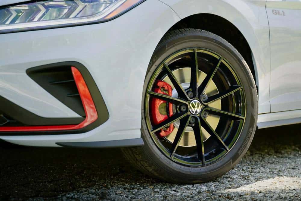 Η διαφορά του «T» με το «L» στην ονομασία δεν φαίνεται οπτικά, καθότι το κορυφαίο Jetta δεν ζηλεύει σε τίποτα τα GTI. Κόκκινες λεπτομέρειες σε μάσκα και εμπρός προφυλακτήρα, διπλές μπούκες και διαχύτη στον πίσω, μαύρες 18άρες ζάντες, διακριτικό αεροδυναμικό πακέτο, χαμηλότερη ανάρτηση, γενικά ό,τι χρειάζεται ένα αυτοκίνητο για να δείχνει σπορ. Ίδια, μην πούμε καλύτερη, εικόνα συναντάμε και στο εσωτερικό, όπου τα μπάκετ καθίσματα, το ταμπλό, το τιμόνι και ο λεβιές χαρακτηρίζονται από τις κόκκινες ραφές. Το «GLI» στη βάση της flat bottomed στεφάνης δεν ξεχωρίζει από το «GTI» σε εκείνη του Golf, ενώ η μεγάλη διαφορά μεταξύ των δυο τους εντοπίζεται στο δίδυμο επιλογέα-πεντάλ.