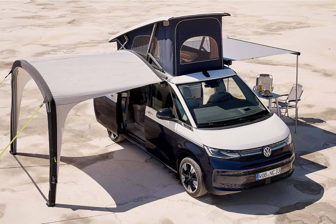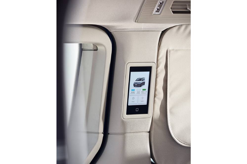 Το νέο California T7 αναλαμβάνει να γεμίσει τη ζωή μας με ψυχαγωγική διάθεση, πατώντας στην έκδοση με το μακρύ μεταξόνιο του Multivan. H διχρωμία και τα ζωηρά χρώματα του αμαξώματος παίζουν πρωτεύοντα ρόλο στην εμφάνιση του γερμανικού camper, ωστόσο τον μεγαλύτερο τον διαδραματίζουν οι διαθέσιμες επιλογές διαμόρφωσης. Από τα πρώτα στοιχεία που ξεχωρίζουν, είναι η πτυσσόμενη οροφή ύψους δύο μέτρων, κατασκευασμένη από αλουμίνιο και ειδικό ύφασμα τριών στρώσεων. Φιλοξενεί υποδοχές USB-C, φωτισμό LED και κρεβάτι, για έναν τέλειο ύπνο με θέα τα αστέρια. Ο μηχανισμός της ελέγχεται από μια οθόνη τύπου tablet, από όπου παράλληλα παρέχονται διάφορες πληροφορίες για το όχημα. Όλα αυτά μπορούν επίσης να ελεγχθούν μέσω smartphone χρησιμοποιώντας την εφαρμογή «Cali on Tour» ή από το σύστημα infotainment.