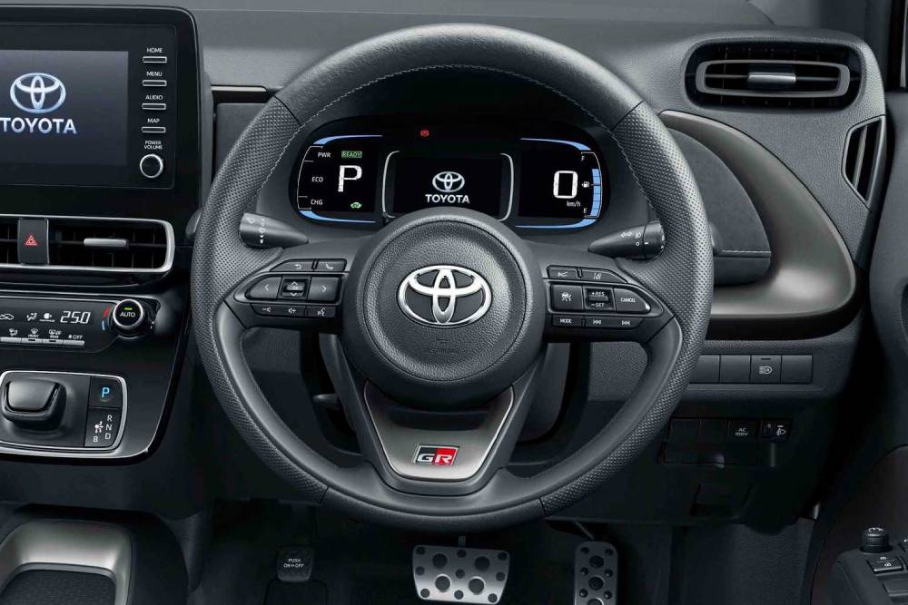 Η δεύτερη γενιά του παρουσιάστηκε πέρσι και τώρα, αποκτά την κορυφαία και πιο σπορ έκδοση GR Sport. Ο επιθετικός εμπρός προφυλακτήρας, με τη μεγάλη εισαγωγή και το σήμα «GR», οι 17άρες 8άκτινες ζάντες (σε ελαστικά Bridgestone Potenza 205/45), οι κόκκινες δαγκάνες των φρένων πίσω τους, τα σκουρόχρωμα φανάρια εμπρός-πίσω, τα μαύρα καλύμματα των καθρεπτών και ο ψευδοδιαχύτης στον πίσω προφυλακτήρα, αρκούν για να διαφοροποιήσουν σε υπερθετικό βαθμό το GR Sport από τα απλά Aqua. Στο εσωτερικό βρίσκουμε κανονικά μπάκετ καθίσματα με επενδύσεις δέρματος-suede, σπορ τριάκτινο τιμόνι με το «GR» σε περίοπτη θέση και αλουμινένια πεντάλ.