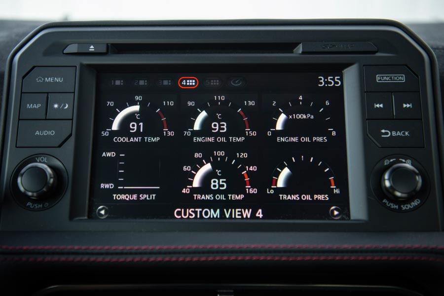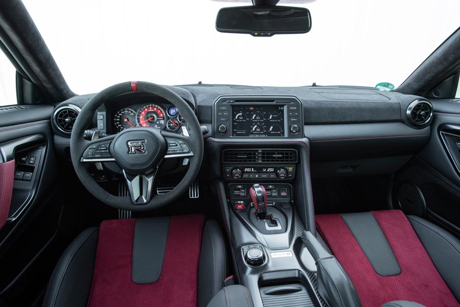Εντός της καμπίνας, τα εμπρός καθίσματα της Recaro που κατασκευάστηκαν αποκλειστικά για το GT-R NISMO 2020, προσφέρουν ακόμα καλύτερη στήριξη σε οδηγό και συνοδηγό. Το εσωτερικό του συμπληρώνει ένας μοναδικός συνδυασμός χρωμάτων με το χαρακτηριστικό μαύρο δερμάτινο σκούρο NISMO σε κόκκινους τόνους. Οι επενδύσεις των καθισμάτων είναι από κόκκινο σουέτ, ενώ στο τιμόνι, το ταμπλό και την επένδυση οροφής υπάρχει σκούρο γκρι Alcantara.