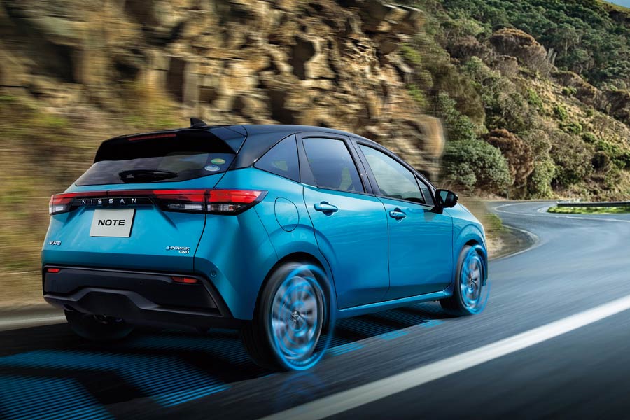 Τόσο τα μοντέλα 2WD όσο και τα 4WD του Note, διαθέτουν τη δεύτερη γενιά του ηλεκτρικού κινητήριου συνόλου e-Power της Nissan. Τώρα, όντας επανασχεδιασμένο και αναβαθμισμένο, το σύστημα παράγει περισσότερη ισχύ, εμπειρία οδήγησης υψηλότερης ποιότητας και βελτιωμένη απόδοση. Αντιπροσωπεύει μια βαθμιαία αλλαγή στις επιδόσεις, με απόκριση στην επιτάχυνση, ομαλή επιβράδυνση και αθόρυβη κύλιση, που μόνο ένα ηλεκτροκίνητο σύστημα μετάδοσης κίνησης μπορεί να προσφέρει.