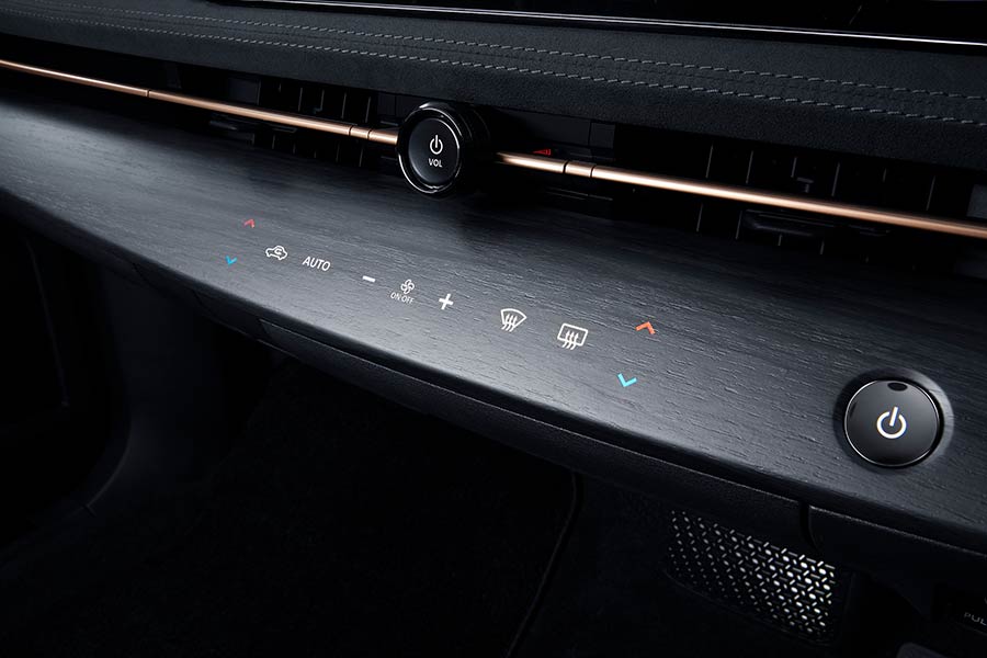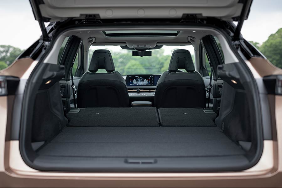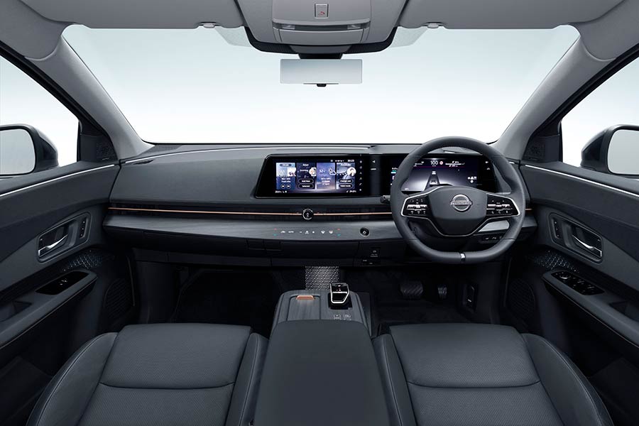 Μεταξύ των τεχνολογικών σημείων αναφοράς στο εσωτερικό του Ariya είναι και οι διακόπτες αφής του συστήματος κλιματισμού στην κεντρική κονσόλα. Αυτοί παρέχουν ίδια αίσθηση με τους μηχανικούς διακόπτες στο άγγιγμα και εμφανίζονται όταν το αυτοκίνητο είναι ενεργοποιημένο. Η κονσόλα ανάμεσα από τα εμπρός καθίσματα μπορεί να μετακινηθεί για να ταιριάζει στις προσωπικές ρυθμίσεις του οδηγού και να αποθηκευτούν ως μέρος του προφίλ. Επιπλέον, όλοι οι επιβάτες έχουν στη διάθεσή τους άφθονους χώρους, κάτι στο οποίο εξυπηρετεί και το εντελώς επίπεδο δάπεδο. Το πορτ μπαγκάζ έχει χωρητικότητα μεταξύ 408 έως 468 λτ., ανάλογα το μοντέλο.