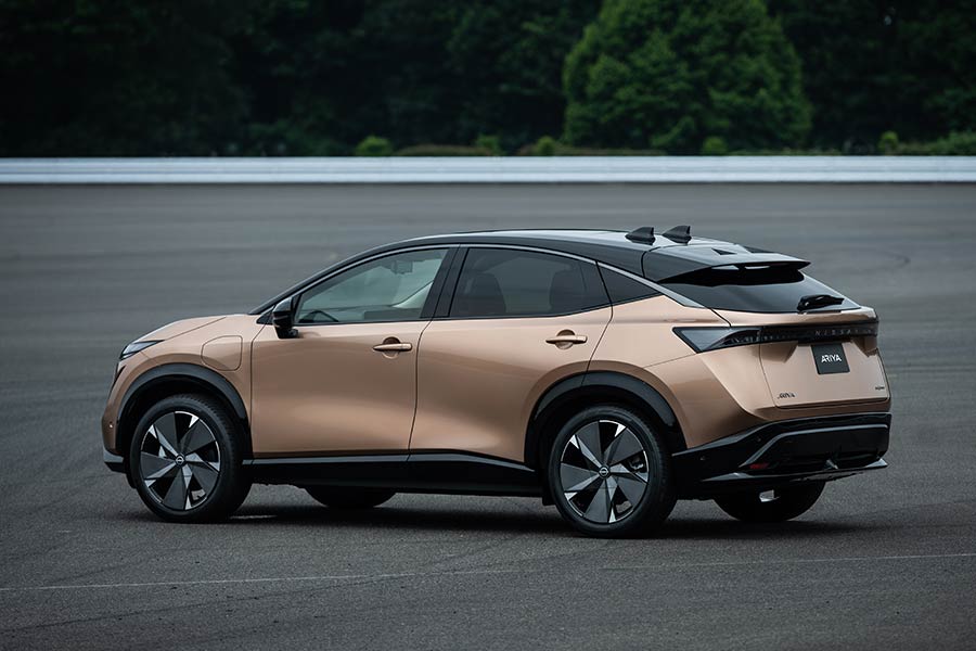 Ο οδηγός έχει στη διάθεσή του έως και τέσσερα προφίλ οδήγησης, το Standard, το Sport και το Eco (το e-4ORCE περιλαμβάνει και επιλογή Snow).Το βάρος του Ariya κυμαίνεται από 1,8 έως 2,3 τόνους και πατάει σε 19 ιντσών ζάντες (προαιρετικά και 20 ιντσών) με ελαστικά διαστάσεων 255/45R20.