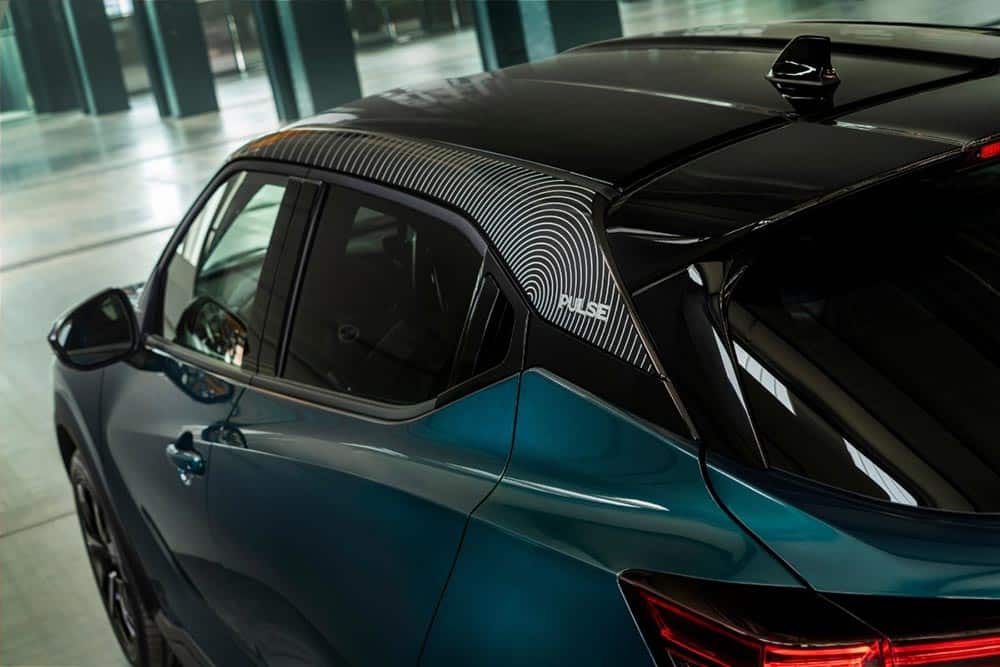 Η χαρακτηριστική σχεδιαστική ταυτότητα του Nissan Juke εξελίσσεται ακόμη περισσότερο στο Juke Pulse. Στο κέντρο της οροφής ξεχωρίζει ένα μοτίβο εμπνευσμένο από ηχητικό κύμα, με το όνομα Pulse να ενσωματώνεται στο σχέδιο. Το μοντέλο ξεχωρίζει στο δρόμο με ζάντες 19 ιντσών και διακοσμητικά στοιχεία στο χρώμα Ocean Deep, ενώ η μαύρη οροφή και τα καλύμματα των καθρεπτών δημιουργούν έντονη αντίθεση με το χρώμα Ocean Deep του αμαξώματος, ενισχύοντας το δυναμικό του χαρακτήρα.