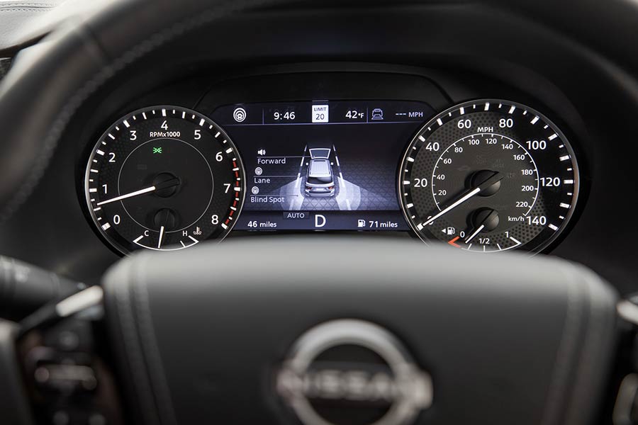 Στο εσωτερικό του ανανεωμένου Armada, η πιο κύρια αλλαγή εντοπίζεται στην ανασχεδιασμένη κεντρική κονσόλα. Στο πάνω μέρος της κυριαρχεί η μεγάλη οθόνη αφής των 12,3 ιντσών του συστήματος πολυμέσων, ενώ η πολυτέλεια είναι διάχυτη σε κάθε σημείο της πολύ ευρύχωρης καμπίνας με τις τρεις σειρές καθισμάτων.