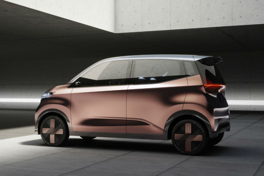 Το πρωτότυπο υιοθετεί την σχεδιαστική φιλοσοφία «Timeless Japanese Futurism», την οποία θα συναντήσουμε σε αρκετά μελλοντικά μοντέλα Nissan, μεταξύ των οποίων και το επόμενο Micra. Το ημίψηλο τετράγωνο σχήμα παραπέμπει ευθέως στα Kei cars, την δημοφιλέστατη κατηγορία μικρών αυτοκινήτων της ιαπωνικής αγοράς. Το χάλκινο χρώμα Akagane και η πανοραμική ηλιοροφή χαρακτηρίζουν την εμφάνιση, ενώ αξίζει να σημειωθεί πως είναι διάφανη και η αεροτομή ώστε να μην χαλάει το οπτικό αποτέλεσμα της οροφής! Χειρολαβές δεν υπάρχουν, με τις πόρτες να ανοίγουν δια της αφής, ενώ απουσιάζουν και οι καθρέπτες προς τέρψη των καμερών – όλα για χάρη της αεροδυναμικής.