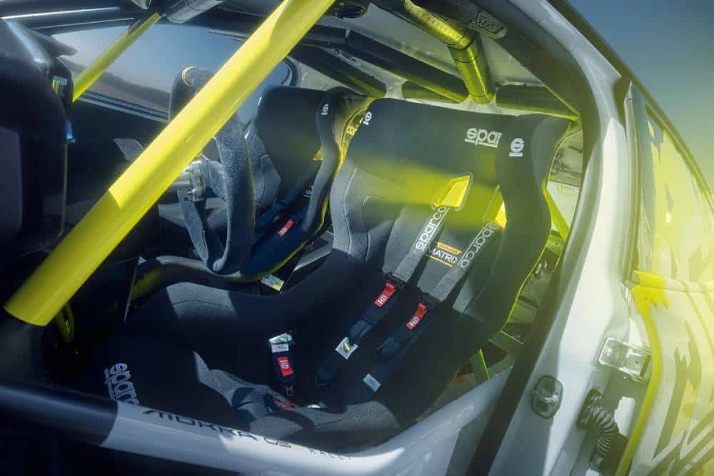 Το πολύδισκο διαφορικό περιορισμένης ολίσθησης, το αγωνιστικό κιβώτιο ταχυτήτων, οι ενισχυμένοι άξονες μετάδοσης και οι πλήμνες τροχών προσφέρουν ισχυρή ώθηση. Το σασί έχει σχεδιαστεί με γνώμονα το χαμηλό βάρος. Η ρυθμισμένη ανάρτηση από την Bilstein περιλαμβάνει ενισχυμένα γόνατα McPherson μπροστά με αρθρώσεις uniball, ενώ πίσω υπάρχει άκαμπτος άξονας με τροποποιημένα ελατήρια και αμορτισέρ. Δεν υπάρχουν ηλεκτρονικά βοηθήματα όπως ABS, ESP, σύστημα διατήρησης λωρίδας ή έλεγχος πρόσφυσης. Η ρύθμιση του λογισμικού για τον κινητήρα και τη διαχείριση της μπαταρίας βασίστηκε στην εμπειρία από το Corsa Rally Electric, με στόχο τη μέγιστη απόδοση και ανταπόκριση σε αγωνιστικές συνθήκες. Η μπαταρία έχει χωρητικότητα 54 kWh.
