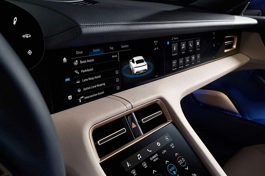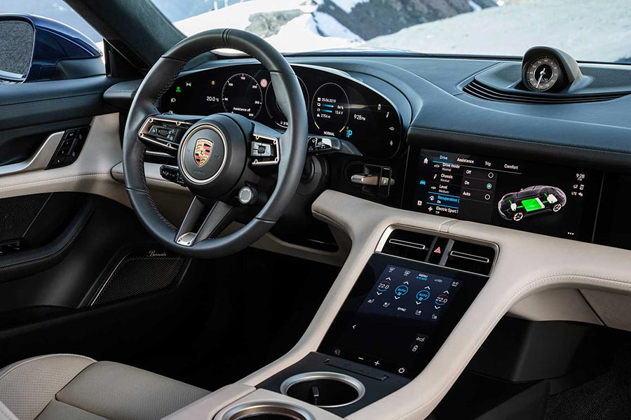 Η καμπίνα σαφώς και βρίθει πολυτέλειας, με τις κύριες γραμμές της να ακολουθούν τα σχεδιαστικά χνάρια της νέας 911, αλλά και της Panamera. Ο πίνακας οργάνων δεν θα μπορούσε παρά να είναι ψηφιακός, ενώ το τιμόνι είναι πανομοιότυπο με αυτό που συναντάμε στο εμβληματικό sportscar από την Στουτγκάρδη. Για την άρτια ενημέρωση του οδηγού υπάρχει μια κεντρική οθόνη πληροφοριών ψυχαγωγίας 10,9 ιντσών, ενώ προαιρετικά μπορεί να τοποθετηθεί ακόμα μια στον συνοδηγό. Ο αριθμός των διακοπτών έχει μειωθεί κατά πολύ, με τον έλεγχο να είναι έξυπνος και διαισθητικός – χρησιμοποιώντας τη λειτουργία αφής ή τη λειτουργία φωνητικού ελέγχου, η οποία ανταποκρίνεται στην εντολή «Hey Porsche». Τα υλικά που απαρτίζουν την καμπίνα είναι όλα ανακυκλώσιμα, ενώ υπάρχουν διαθέσιμοι δυο χώροι αποσκευών: το μπροστινό τμήμα έχει χωρητικότητα 81 λίτρων και το πίσω μέρος 366 λίτρα.