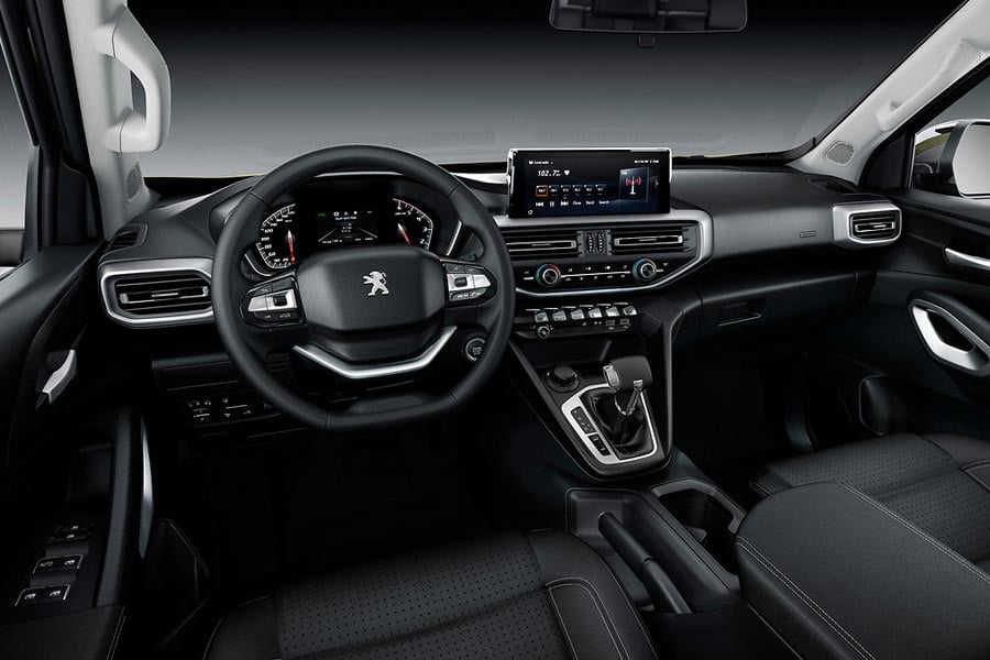 Μοντέρνο σχεδιασμό παρουσιάζει και το εσωτερικό του νέου Peugeot Landtrek, υιοθετώντας και αυτό στοιχεία από τα επιβατικά μοντέλα της μάρκας. Το τιμόνι με τις δύο ακτίνες, η μεγάλη οθόνη των 10 ιντσών του συστήματος πολυμέσων και τα επιμέρους χειριστήρια παραπέμπουν στα 3008 και 508. Στον τομέα των χώρων, στο εμπρός τμήμα της καμπίνας υπάρχει η επιλογή των 2 ανεξάρτητων καθισμάτων ή του ενός ενιαίου. Στο διπλοκάμπινο μπορεί να μεταφέρει έως 6 επιβάτες, ενώ το πίσω κάθισμα είναι διαιρούμενο σε ποσοστό 60/40 ή 100%.