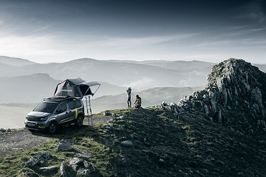 Εντυπωσιακός είναι και ο εξοπλισμός του Peugeot Rifter 4×4 Concept, καθώς με δύο απλές κινήσεις μπορεί να στηθεί μία σκηνή στην οροφή του και να φιλοξενήσει δύο άτομα, ενώ εμπρός από αυτήν υπάρχει μπάρα LED.
