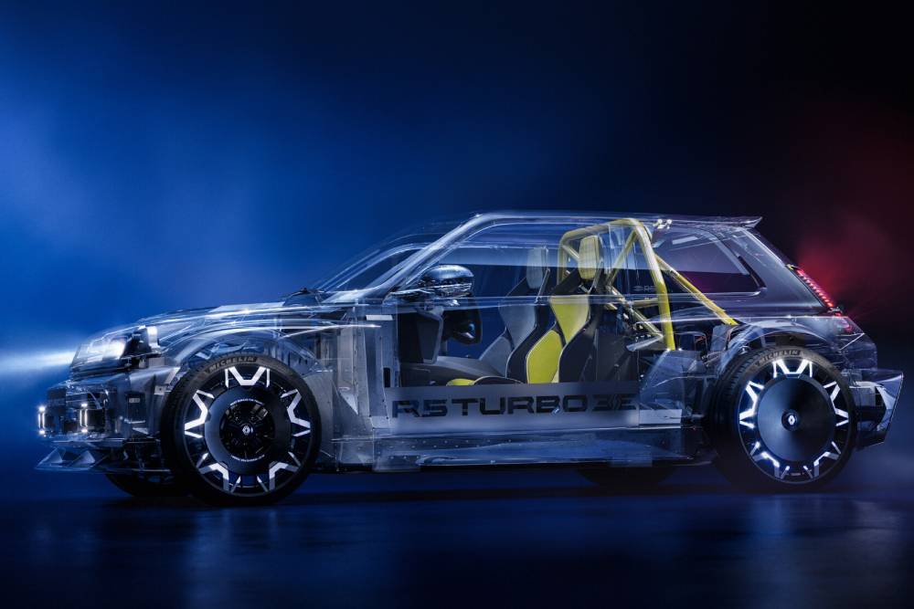 Το αμάξωμα από ανθρακονήματα είναι ελαφρύ και διαθέτει εξαιρετικά χαρακτηριστικά ακαμψίας, δύο ιδιότητες που είναι θεμελιώδεις για έναν «πύραυλο τσέπης», αντάξιο του ονόματος και της κληρονομιάς του. Όπως και ο εμβληματικός πρόγονός του, το Renault 5 Turbo 3E έχει την κίνηση στους πίσω τροχούς. Οι δύο ηλεκτροκινητήρες που βρίσκονται στα μετόπισθεν, προσφέρουν αμεσότητα απόκρισης στη μετάδοση της ισχύος σε κάθε τροχό, επιτυγχάνοντας συνολική ισχύ 540 ίππων και 4.800 Nm! Πίσω από το τιμόνι, ο οδηγός θα βιώσει μοναδικές συγκινήσεις, όχι μόνο των 500+ ίππων στον πίσω άξονα, αλλά χάρη και στην ακαριαία επιτάχυνση. Το ηλεκτρικό hyper hatch ολοκληρώνει το 0-100 χλμ./ώρα σε μόλις 3,5 δευτερόλεπτα, τιμή ισάξια ενός supercar ή ακόμα και ενός hypercar, φτάνοντας παράλληλα μέχρι τα 270 χλμ./ώρα τελικής (από τις υψηλότερες σε ηλεκτρικό).