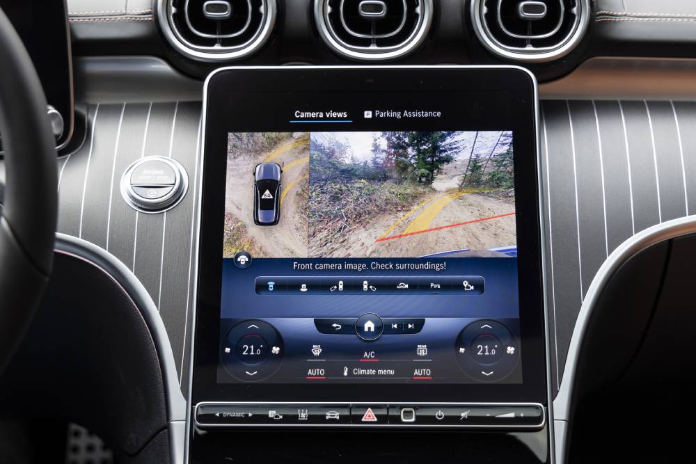 Η ανάρτηση του μπροστινού άξονα είναι τεσσάρων συνδέσμων και του πίσω πολλαπλών με διαφορετικές ρυθμίσεις, λόγω τις αυξημένης κατά 40 χλστ. απόστασης από το έδαφος. Για τη χρήση σε ανώμαλα τερέν η συγκεκριμένη C-Class προσφέρει δύο διαφορετικά προγράμματα. Εκτός από τα Eco, Comfort, Sport, και Individual, το All-Terrain διαθέτει δύο ακόμη λειτουργίες Dynamic Select για οδήγηση εκτός δρόμου: Το Offroad για εύκολα εδάφη όπως χωματόδρομοι, χαλίκι ή άμμος και το Offroad+ με DSR (σύστημα ελέγχου κατάβασης) για κάπως απότομο έδαφος. Το σύστημα 4Matic μπορεί να στείλει τη δύναμη στους εμπρός τροχούς έως 45% και στους πίσω έως 55%, ενώ συνδυάζεται με αυτόματο κιβώτιο εννέα σχέσεων.
