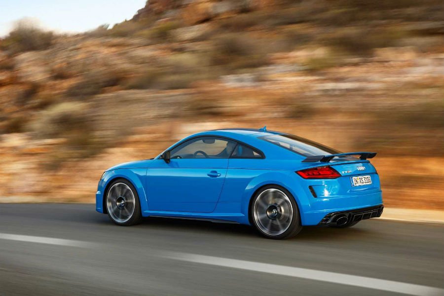 Στο πίσω μέρος τα φωτιστικά σώματα επίσης μπορούν αποκτήσουν μορφή OLED, όμως η βασικότερη αλλαγή αφορά στην νέα αεροτομή. Ελαφρώς μεγαλύτερο από πριν και με έντονα ακροπτερύγια, το νέο spoiler αυξάνει την αεροδυναμική ισορροπία της ουράς και κατανέμει πιο ομοιόμορφα τα παραγόμενα κάθετα φορτία – και, φυσικά, προσδίδει πιο αγωνιστικό look στο TT RS.