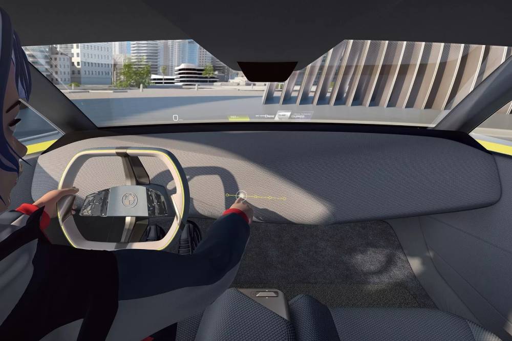 Στο εσωτερικό συναντάμε ανάλογα προηγμένα στοιχεία, με πρωταγωνιστικό το Head-Up Display που εκτείνεται σε όλο το παρμπρίζ. Το BMW Mixed Reality Slider, σε συνδυασμό με το προηγμένο Head-up-Display, είναι το ψηφιακό highlight και το κέντρο ελέγχου λειτουργίας του αυτοκινήτου. Χρησιμοποιώντας shy-tech αισθητήρες στον πίνακα οργάνων, οι οδηγοί μπορούν να αποφασίζουν οι ίδιοι την ποσότητα του ψηφιακού περιεχομένου που θέλουν να βλέπουν, τη στιγμή που η προβολή σε όλο το πλάτος του παρμπρίζ επιτρέπει την απεικόνιση πληροφοριών στη μεγαλύτερη δυνατή επιφάνεια. Η έκδοση παραγωγής αυτής της τεχνολογίας θα χρησιμοποιείται στα μοντέλα της Neu Klasse, από το 2025 και μετά.