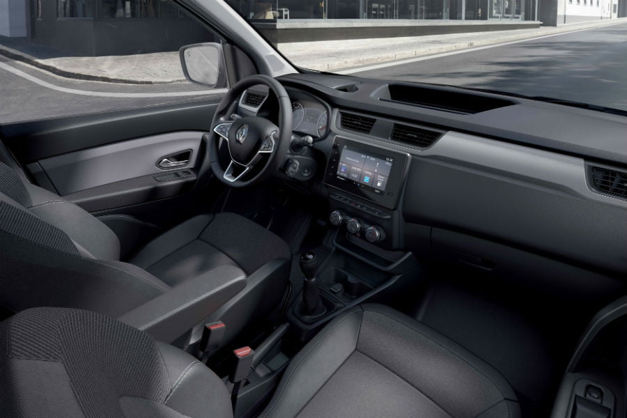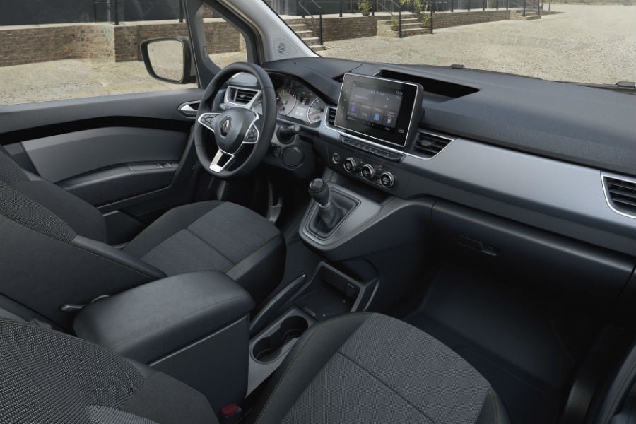Στο εσωτερικό, η ολική αναβάθμιση της εικόνας συνεχίζεται. Το ταμπλό φιλοξενεί οθόνη αφής, που δίνει πρόσβαση στο σύστημα πολυμέσων Easy Link, κάνοντας την καμπίνα του Kangoo να θυμίζει ξεκάθαρα επιβατικό αυτοκίνητο. Ακόμα και τα Express/Express Van, που προσανατολίζονται ως επί το πλείστον σε επαγγελματική χρήση, διαθέτουν οθόνη αφής και Easy Link, αλλά με πιο λιτές γραμμές και τον λεβιέ χαμηλά στην κεντρική κονσόλα (στο ταμπλό για τα Kangoo/Kangoo Van). Συστήματα όπως έλεγχος οπίσθιας κυκλοφορίας, ευστάθειας trailer και αυτόματο φρενάρισμα είναι επίσης παρόντα.