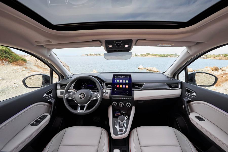 Πλήρως αναβαθμισμένο σε σχεδιασμό είναι το εσωτερικό με τις οριζόντιες γραμμές στο ταμπλό, το μοντέρνο διάκοσμο και την χαρακτηριστική κάθετα τοποθετημένη οθόνη αφής των 7 ή 9,3 ιντσών του συστήματος infotainment. Επίσης, υπάρχει νέος ψηφιακός πίνακας οργάνων 7 ή 10,2 ιντσών με γραφικά που αλλάζουν. Τη σύγχρονη τεχνολογία του νέου Captur ενισχύουν με την σειρά τους τα πάρα πολλά συστήματα υποβοήθησης του οδηγού.