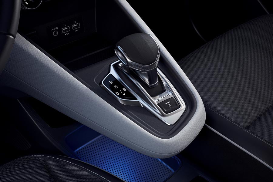 Εξωτερικά, τα λογότυπα E-Tech Plug-in Hybrid αποτελούν την ειδοποιό διαφορά, ενώ στη δεξιά πλευρά βρίσκεται η υποδοχή για την πρίζα φόρτισης. Στο εσωτερικό της υπάρχουν τρεις φωτεινές ενδείξεις: Μπλε (φόρτιση), πράσινη (φορτισμένο), πορτοκαλί (αναμονή) και κόκκινη (χωρίς φόρτιση).