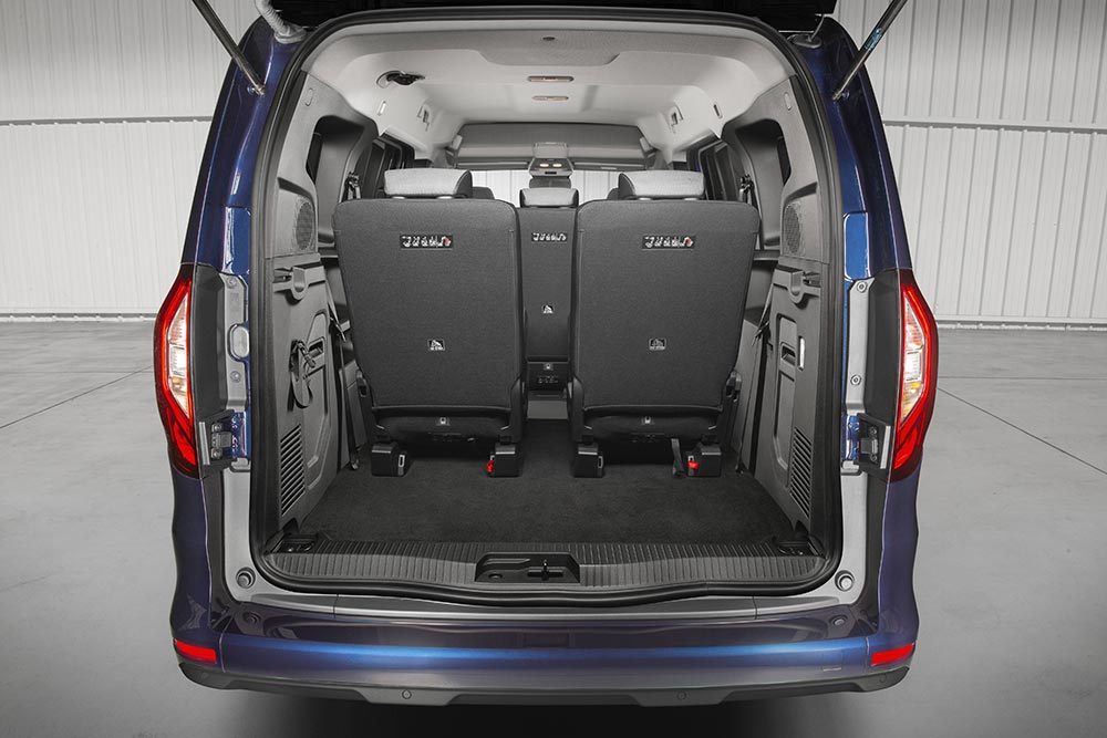 Όσο για το πορτ μπαγκάζ, φτάνει τα 500 λίτρα με τις 7 θέσεις, με δυνατότητα επέκτασης στα 3.750 λίτρα (!) όταν αφαιρεθούν όλα τα πίσω καθίσματα και αναδιπλωθεί η θέση του συνοδηγού. Σε αυτή την περίπτωση το μήκος του χώρου φόρτωσης φτάνει τα 3,11 μέτρα. Η πρόσβαση στην 3η σειρά γίνεται ευκολότερη από τις δύο φαρδιές συρόμενες πόρτες των 83 εκατοστών (+18 εκ. σε σύγκριση με το Kangoo), το χαμηλό μαρσπιέ της πόρτας και τα αναδιπλούμενα καθίσματα της δεύτερης σειράς. Επίσης, η πόρτα του χώρου αποσκευών είναι διαθέσιμη μονοκόμματη, αλλά και διαιρούμενη 2/3-1/3, διευκολύνοντας σε σημεία που το ύψος είναι περιορισμένο.