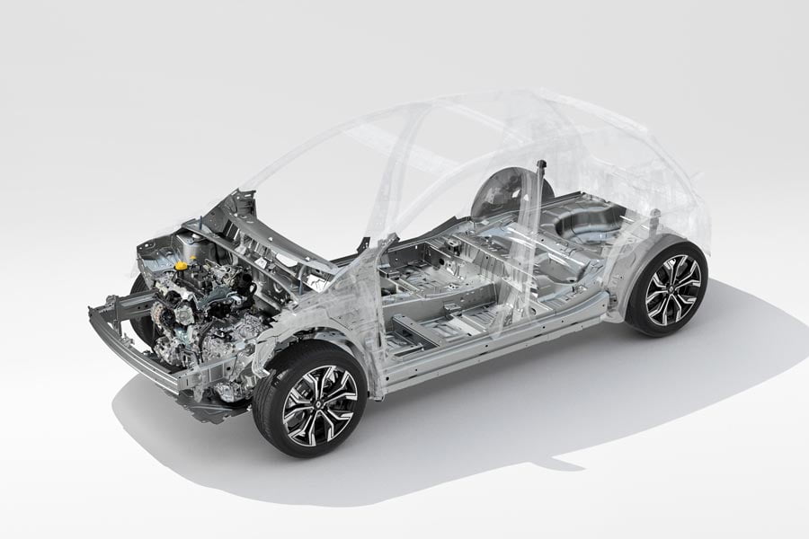Το νέο Clio είναι το πρώτο μοντέλο που βασίζεται στην καινούργια πλατφόρμα CMF-B, η οποία εξασφαλίζει μείωση του βάρους κατά 50 κιλά, βελτιωμένη αεροδυναμική και περισσότερη ασφάλεια σε ενδεχόμενο σύγκρουσης. Επίσης, έχει σχεδιαστεί για να μπορεί να υποστηρίξει εξηλεκτρισμένες εκδόσεις το 2020 με τον υβριδικό κινητήρα E-TECH. Το μηχανικό αυτό σύνολο θα αποτελείται από ένα νέας γενιάς μοτέρ βενζίνης 1.6 λτ., συνδυασμένο με δύο ηλεκτροκινητήρες και με μια μπαταρία 1,2 kWh.
