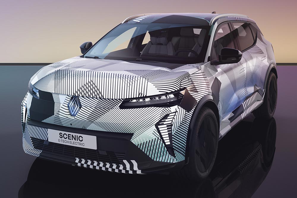 Προς το παρόν η Renault το παρουσιάζει καμουφλαρισμένο, ωστόσο τα αποκαλυπτήριά του δεν αργούν, μιας και είναι προγραμματισμένα να γίνουν στις 4 Σεπτεμβρίου, στην έκθεση αυτοκινήτου του Μονάχου. Όπως μπορούμε να διακρίνουμε από το καμουφλαρισμένο Scenic E-Tech, υιοθετεί τα σχεδιαστικά στοιχεία που είδαμε τον περασμένο Μάιο στο πρωτότυπο Renault Scenic Vision και πιο πρόσφατα στο Rafale. Οι διαστάσεις του αναμένεται να είναι παραπλήσιες με του Scenic Vision, δηλαδή μήκος 4,49 μέτρα, πλάτος 1,90 μέτρα και ύψος 1,59 μέτρα.