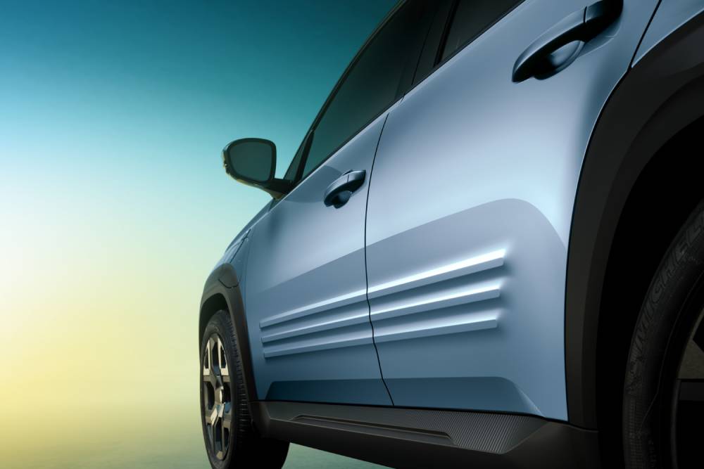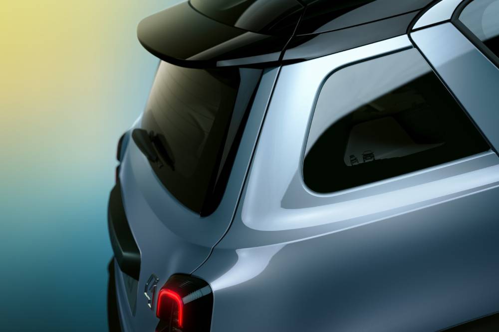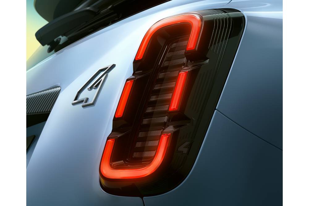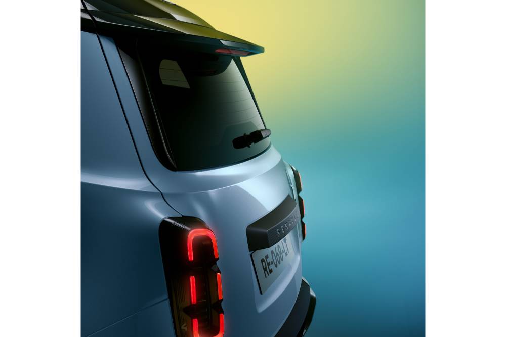 To «4» δεν θα μπορούσε να λείπει από το πίσω μέρος, δίπλα ακριβώς από το δεξί φανάρι, το οποίο μετενσαρκώνει το σχήμα χαπιού από το αρχέγονο 4L στα σημερινά δεδομένα. Το 4 E-Tech electric εξακολουθεί να διαθέτει το σήμα κατατεθέν του προκατόχου του, που δεν είναι άλλο από τα τραπεζοειδή πίσω φινιστρίνια, ακριβώς πάνω από τους πίσω τροχούς – ένα από τα πιο αναγνωρίσιμα χαρακτηριστικά του «Κατρέλ» – που συμβάλλει στη μεγιστοποίηση της συνολικής επιφάνειας των πλευρικών τζαμιών. Έχοντας κατά νου τα πλαστικά προστατευτικά που ξεχώριζαν στις πλευρές των μετέπειτα γενεών του 4L, τα πλαϊνά του Renault 4 E-Tech electric έχουν τρεις παράλληλες ‘ρίγες’, που μοιάζουν με οριζόντια εξογκώματα στο αμάξωμα, ενώ ένα αυτοκόλλητο που συνδέει νοητά τις κολώνες του παρμπρίζ με τους θόλους των τροχών, παραπέμπει στα χαρακτηριστικά μπροστινά φτερά του αρχικού Renault 4.