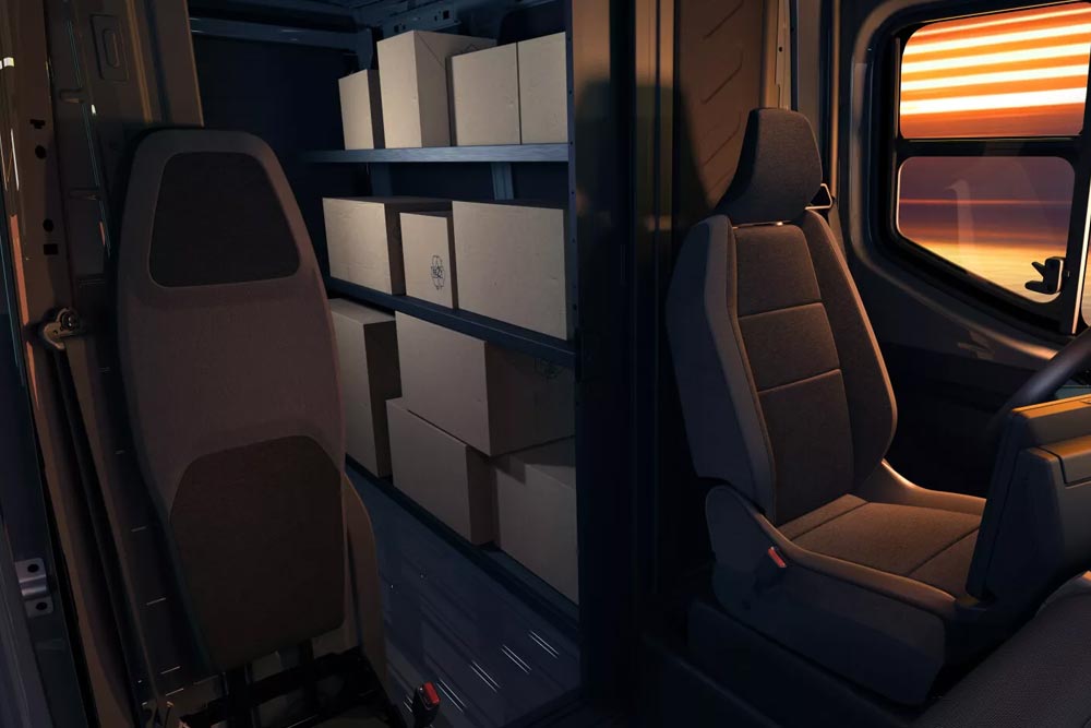Οι συρόμενες σε ράγα πόρτες ανοίγουν και κλείνουν με μία μόνο κίνηση, χωρίς να απαιτείται τράβηγμα πρώτα, όπως συμβαίνει συνήθως με τα βαν. Για να διευκολυνθεί ακόμη περισσότερο η εργασία των οδηγών – χειριστών, οι εξωτερικές λαβές έχουν σχεδιαστεί για να ανοίγουν με τον αγκώνα, ώστε να μπορούν να κρατούν σταθερά τα εμπορεύματα. Επιπλέον, η δεξιά συρόμενη πόρτα – στην πλευρά του πεζοδρομίου – έχει γίνει ελαφρύτερη. Τα πλαϊνά σκαλοπάτια και στις δύο πλευρές διευκολύνουν την είσοδο και την έξοδο από το όχημα, βελτιώνοντας έτσι την εργονομία κατά τη χρήση. Στο πίσω μέρος, μια μονοκόμματη πόρτα με ρολό, βελτιστοποιεί το χώρο φόρτωσης, και το πίσω σκαλοπάτι, υπογραμμίζει τον, στιβαρό και υψηλής τεχνολογίας, χαρακτήρα του οχήματος.