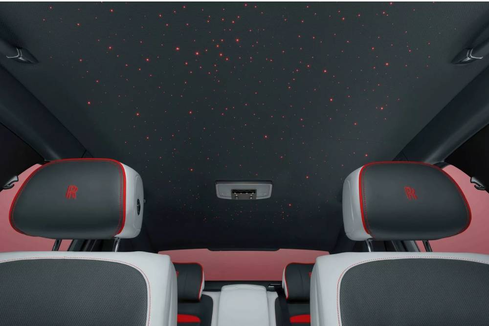 Οι Βρετανοί συνεχίζουν το μοτίβο των αντιθέσεων και στην καμπίνα των επιβατών, όπου οι γκρί και λευκές επενδύσεις «σπάνε» από επιλεγμένα στοιχεία κόκκινων, με βασικότερες το εσωτερικό της στεφάνης του τιμονιού και την κορυφή του ταμπλό. Παράλληλα διαβεβαιώνουν τους υποψήφιους αγοραστές πως υπάρχει ένας σχεδόν απεριόριστος συνδυασμός χρωμάτων και δυνατότητες εξατομίκευσης, με το -κατ’ επιλογήν του εκάστοτε πελάτη- ξύλο και τα 1.040 LED στον έναστρο «ουρανό» να κερδίζουν τις εντυπώσεις.