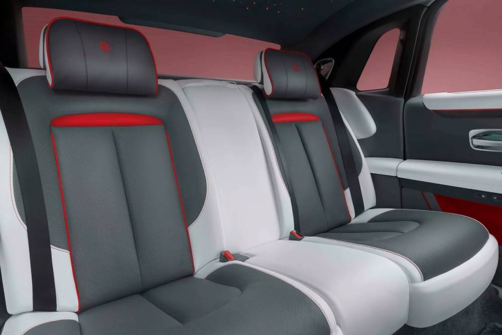 Πρακτικά και οπτικά, αυτό σημαίνει πως η λιμουζίνα που θαυμάζουμε παντρεύει το Gunmetal ανθρακί χρώμα του αμαξώματος με μαύρα στοιχεία στη μάσκα, τους προφυλακτήρες και τις ζάντες, μαζί με ενθέσεις ζωηρών αποχρώσεων στον εμπρός προφυλακτήρα, το προφίλ και τις δαγκάνες των φρένων. Εδώ βλέπουμε την κόκκινη Phoenix Red, αλλά προσφέρονται επίσης οι Turchese, Mandarin και Forge Yellow. Για να έρθει η Ghost Prism στη λαμπερή και αψεγάδιαστη κατάσταση των φωτογραφιών, απαιτείται μια χρονοβόρα διαδικασία βαφής 10 βημάτων όπου εφαρμόζονται 4 στρώσεις χρώματος και στη συνέχεια γυαλίζονται με το χέρι, για συνολικά 16 ώρες!