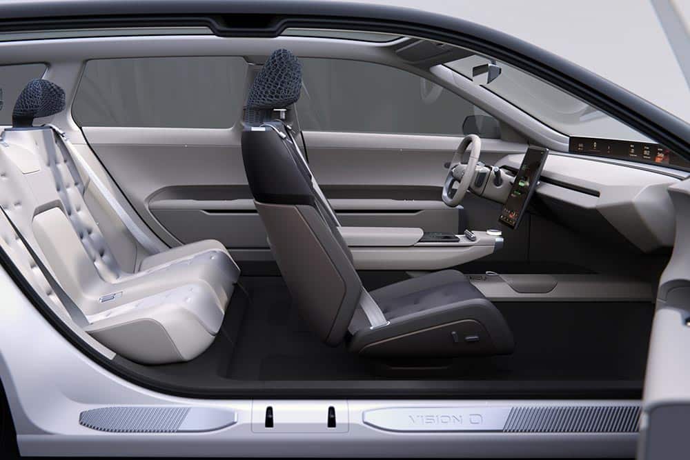 Επιπλέον, μια ευέλικτη λειτουργία Tranquil προσαρμόζει τη διαμόρφωση των καθισμάτων για άνεση ή επιπλέον χώρο και αλλάζει τον φωτισμό περιβάλλοντος ώστε να ταιριάζει με την επιλεγμένη λειτουργία. Τα καθίσματα σύρονται προς τα πίσω για να αποκαλύψουν επιπλέον χώρο για τον επιβάτη, δημιουργώντας ένα ιδανικό περιβάλλον χαλάρωσης στο αυτοκίνητο. Η λειτουργία ηρεμίας προσφέρει επίσης μια χαλαρωτική εμπειρία με αγαπημένη μουσική, προσαρμοσμένο φωτισμό και μειωμένο περιεχόμενο στις οθόνες. Τα καλύμματα καθισμάτων είναι κατασκευασμένα από 100% ανακυκλωμένο υλικό PES flatknit, πλεγμένο ειδικά για το σχήμα του καθίσματος με λειτουργικά διακοσμητικά στοιχεία. Το ειδικά κατασκευασμένο προσκέφαλο χρησιμοποιεί Ultrasint TPU, ένα εύκαμπτο, ανθεκτικό και ανακυκλώσιμο υλικό που παράγεται σε παραγωγή μηδενικών αποβλήτων.