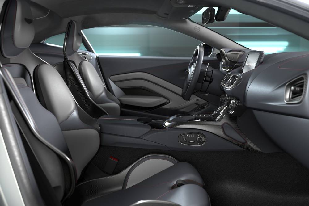 Η μείωση του βάρους υπήρξε προτεραιότητα των μηχανικών, με πολλά εξαρτήματα να είναι είτε ανθρακονημάτινα (καπό, εμπρός προφυλακτήρας, εμπρός φτερά, μαρσπιέ), είτε από συνθετικά υλικά (πίσω προφυλακτήρας και πόρτα πορτμπαγκάζ). Ελαφριά είναι και η μπαταρία, ενώ η κεντρικά τοποθετημένη εξάτμιση αποτελείται από ελαφρύ κράμα ανοξείδωτου ατσάλι, που ζυγίζει 7,2 κιλά λιγότερο σε σχέση με εκείνη της απλής Vantage. Τα κεραμικά δισκόφρενα (410 χλστ. εμπρός-360 χλστ. πίσω) με 6πίστονες δαγκάνες μπροστά – 4πίστονες πίσω «κόβουν» 23 κιλά και ανθίστανται της φθοράς/πτώσης απόδοσης ακόμα και σε θερμοκρασίες που φτάνουν τους 800 βαθμούς Κελσίου.