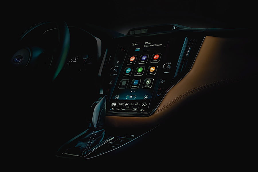 Περισσότερα όμως έγιναν αντιληπτά με τη φωτογραφία της καμπίνας του νέου Subaru Legacy. Εκεί δυναμικό παρόν δίνει η μεγάλη οθόνη αφής του συστήματος infotainment που θυμίζει tablet, με τον κλιματισμό να ρυθμίζεται μέσω αφής κι αυτός. Γενικότερα, η κατασκευή της καμπίνας αναμένεται να βρίθει πολυτέλειας, κάτι που υποδηλώνει και το δέρμα που καλύπτει το ταμπλό.