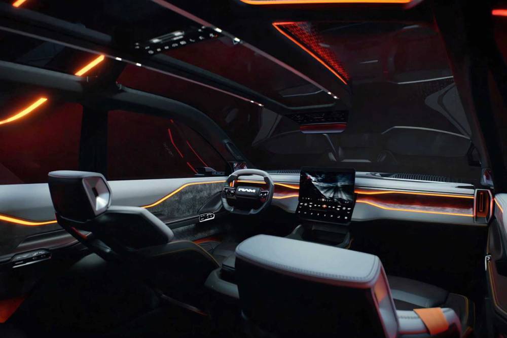 Ακόμα μια καινοτομία αποτελεί η ύπαρξη τρίτης σειράς για τους επιβάτες. Πριν από περίπου 50 χρόνια παρουσιάστηκαν τα pickup με θέσεις για πίσω επιβάτες και τώρα η Ram, εκμεταλλευόμενη τα χαρακτηριστικά της πλατφόρμας STLA Frame, προσφέρει και μια τρίτη σειρά θέσεων με πτυσσόμενα καθίσματα, ενώ μέσω μια θύρας είναι εφικτή η πρόσβαση από την καμπίνα των επιβατών στο χώρο φόρτωσης.