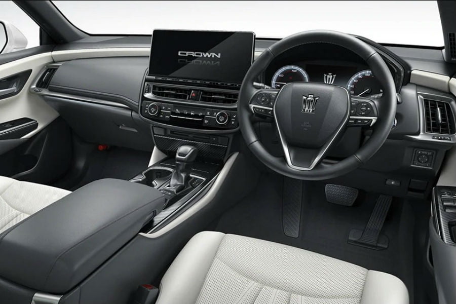 Η σημερινή παρουσιάστηκε πριν 2 χρόνια, ωστόσο η Toyota έκρινε πως χρειαζόταν αναβάθμιση. Όχι τόσο εξωτερικά όπου η μάσκα-ασπίδα, οι προφυλακτήρες και τα φωτιστικά σώματα μένουν σχεδόν απαράλλαχτα (νέα χρώματα και σχέδια για τις ζάντες αλουμινίου, οι κυριότερες προσθήκες, μαζί με την έκδοση RS των φωτογραφιών), όσο εντός της καμπίνας. Εκεί το Crown ενστερνίζεται πλήρως την ψηφιακότητα, αποκτώντας μια τεράστια οθόνη 12,3 ιντσών στο κέντρο του ταμπλό (από τις μεγαλύτερες στην αυτοκινητοβιομηχανία) και αντικαθιστώντας τις διπλές οθόνες (μία στην κορυφή και μία στο κέντρο του ταμπλό) που είχε μέχρι τώρα. Εννοείται Apple CarPlay και Android Auto συγκαταλέγονται στο στάνταρ εξοπλισμό.