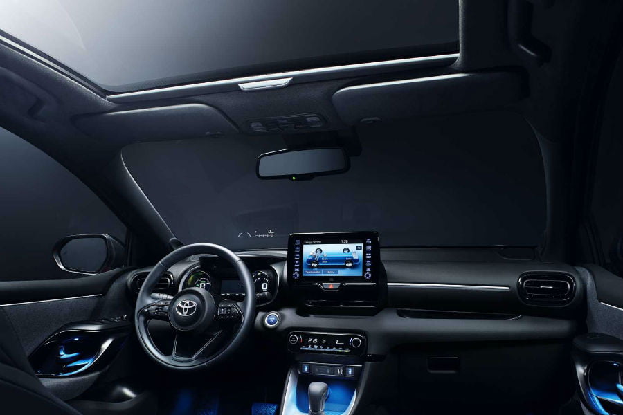 Στο εσωτερικό ο αέρας ανανέωσης επίσης πνέει δυνατά, με την οθόνη των 10 ιντσών στο κέντρο και τον ψηφιακό πίνακα οργάνων να χαρίζουν άπλετη ψηφιακή νότα στην καμπίνα των επιβατών. Προαιρετικά, για το Yaris Hybrid, διατίθεται πανοραμική ηλιοροφή.