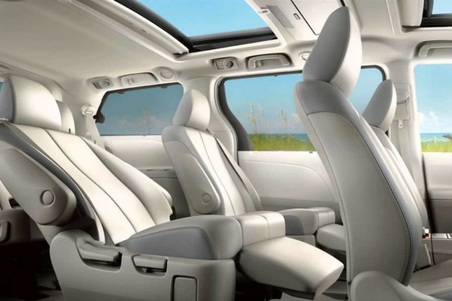 Αυτό που εντυπωσιάζει είναι οι πολυθρόνες στις οποίες μπορεί να μετατραπούν τα καθίσματα της μεσαίας σειράς (το Sienna είναι 7θέσιο), με την τεχνολογία Super Long Slide.