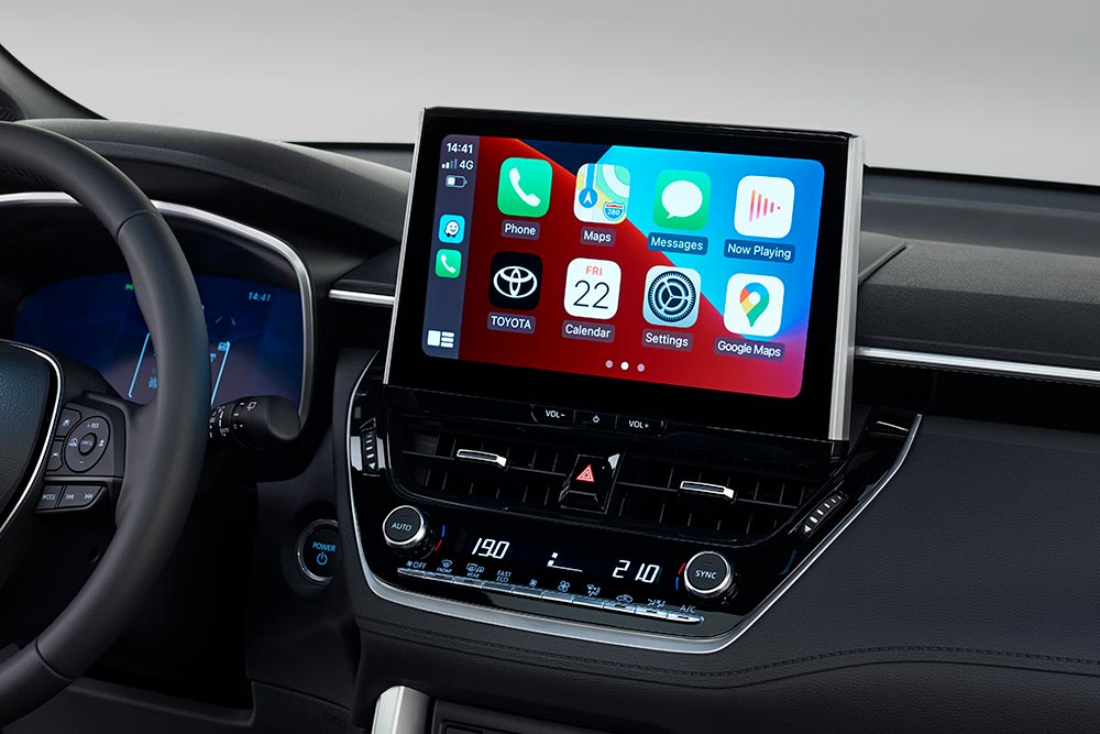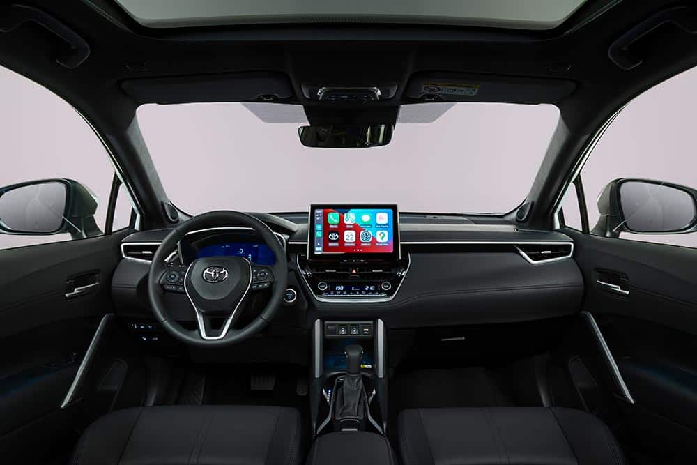 Στον εξοπλισμό του Corolla Cross Hybrid περιλαμβάνονται -εκτός άλλων- ψηφιακός πίνακας οργάνων 12,3 ιντσών, κεντρική οθόνη αφής 10,5 ιντσών και μια πλειάδα συστημάτων υποβοήθησης του οδηγού.