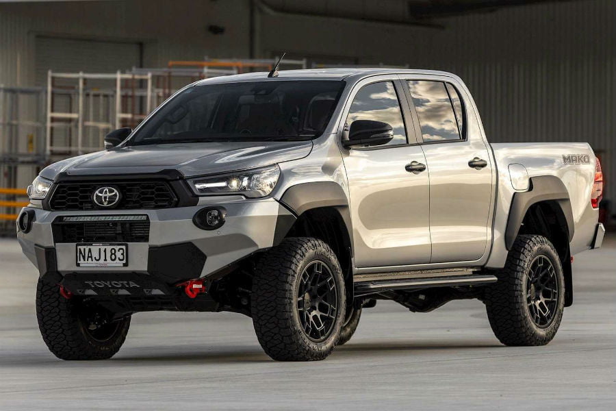 Το «κάτι σαν GR Hilux» μοιάζει λες και όντως βγήκε από τις εγκαταστάσεις της Gazoo Racing, με τον προφυλακτήρα και τη μεταλλική ποδιά μπροστά, τους μεγάλους τροχούς με τα χωμάτινα ελαστικά, τα σκαλοπάτια, τα φουσκωμένα φτερά και την αυξημένη απόσταση από το έδαφος να καθιστούν το Mako ως το πιο hardcore Hilux που έχουμε δει, συμπεριλαμβανομένων των δημιουργιών της TRD.