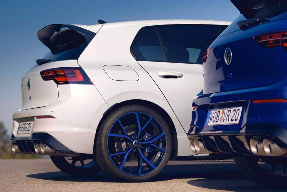 Το επετειακό R δεν ξεχωρίζει από τα υπόλοιπα, εκτός κι αν επιλεγεί το λευκό χρώμα για το αμάξωμα. Σε αυτή την περίπτωση οι 19άρες ζάντες βάφονται μπλε και θυμίζουν κάτι από τους αντίστοιχους χρωματικούς συνδυασμούς της Porsche 911 GT3 RS. Διαφορετικά, με το παραδοσιακό Leipzig Blue στο εξωτερικό, το φινίρισμα των τροχών είναι ένα εξίσου κλασικό gloss μαύρο. Θα πρέπει να είσαι παρατηρητικός και να δεις το «20» στη μεσαία κολώνα, ή να είναι βράδυ και να φωτίσει με τον ανάλογο αριθμό το οδόστρωμα το LED του καθρέπτη, ούτως ώστε να δεις τις έτερες διαφοροποιήσεις του 20 Edition – συν τη μεγαλύτερη αεροτομή, μέρος του πακέτου R-Performance.