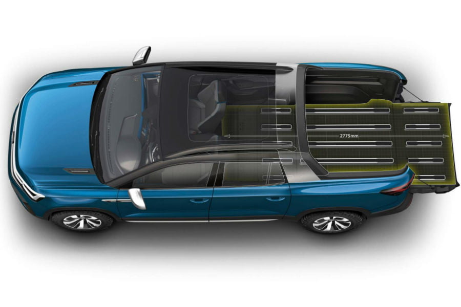 Στο πίσω μέρος η ενιαία αισθητική των φαναριών συνεχίζεται, προσφέροντας με εντελώς διαφορετική άποψη σε σχέση με τα κάθετα τοποθετημένα φωτιστικά σώματα που αποτελούν τον κανόνα στην κατηγορία των αγροτικών. Στο ίδιο επίπεδο διαφορετικότητας κινείται και η καρότσα, η οποία είναι ενσωματωμένη στο πλαίσιο και αποτελεί συνέχεια της καμπίνας των επιβατών. Φανταστείτε ένα SUV, δηλαδή, στο οποίο αφαιρείται η οροφή πάνω από τον χώρο αποσκευών και ο τελευταίος διαχωρίζεται από το εσωτερικό. Δεν είναι αποκλεισμένος, όμως, καθώς με την αναδίπλωση των πίσω καθισμάτων αυξάνεται η χωρητικότητά του. Όπως συμβαίνει με τον χώρο φόρτωσης του Tarok, ο οποίος με τα καθίσματα κάτω μπορεί να φτάσει τον 1 τόνο ωφέλιμου φορτίου (στον μέσο όρο της κατηγορίας, δηλαδή).