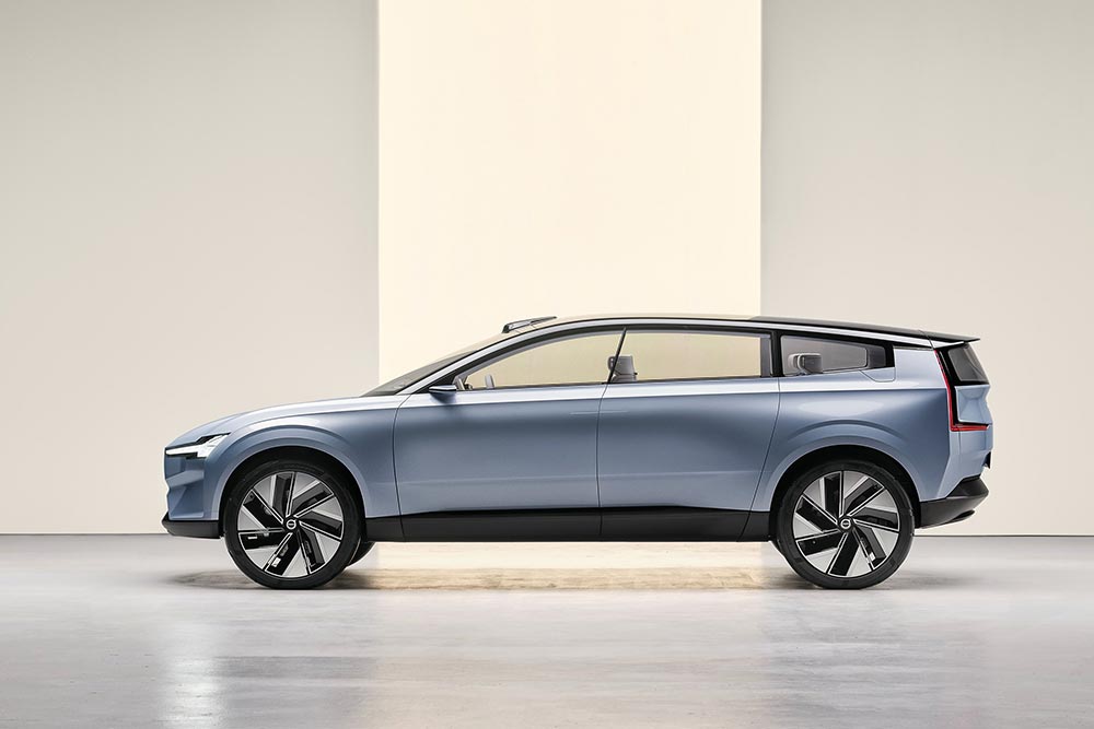 Με το Concept Recharge, η Volvo οραματίζεται το μέλλον της αεροδυναμικής. Το αμάξωμα ενσωματώνει καινοτόμα αεροδυναμικά στοιχεία, όπως οι λεπτομέρειες της εξωτερικής σχεδίασης που εξομαλύνουν τη ροή αέρα, νέο σχεδιασμό τροχών, χαμηλότερη οροφή και ένα πιο κάθετο πίσω τμήμα. Με αφετηρία το κλασικό σχήμα ενός SUV, έχει βελτιωθεί η ροή αέρα για να αυξηθεί η αυτονομία, ενώ προσφέρεται η απίστευτη εκμετάλλευση χώρων που προσδοκά κάνεις από ένα ηλεκτρικό αυτοκίνητο με χαμηλό δάπεδο.