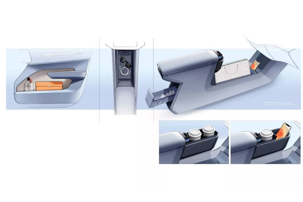 Στο εσωτερικό συναντάμε πεντακάθαρες γραμμές και σχεδόν πλήρη απουσία διακοπτών. Το χειριστήριο πίσω από το τιμόνι (και προφανώς το αντίστοιχο από την άλλη μεριά, που εδώ δεν φαίνεται) είναι η μόνη φυσική παρουσία, με όλες τις λειτουργίες να συγκεντρώνονται στην κάθετη οθόνη αφής των 12,3 ιντσών. Είναι χαρακτηριστικό πως δεν υπάρχει ούτε πίνακας οργάνων πίσω από το τιμόνι, αφήνοντας λογικά την ενημέρωση του οδηγού στο head-up display. Το soundbar στη βάση του παρμπρίζ, που εκτείνεται σε όλο το πλάτος, οι δυνατότητες συνδεσιμότητας (Apple CarPlay, Android Auto, WiFi 5G) και τα συστήματα ασφαλείας (δείτε αναλυτικά παρακάτω) συνθέτουν τα highlights του νέου Volvo. Τα ανακυκλωμένα υλικά και οι θήκες για μικροαντικείμενα, δυο ακόμα.