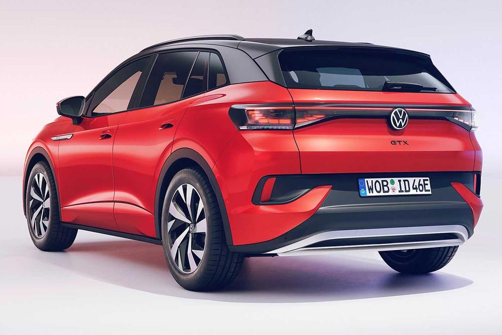 Η βάση του νέου VW ID.4 GTX είναι η all around αρθρωτή πλατφόρμα ΜΕΒ που χρησιμοποιεί η μάρκα για μια σειρά αυτοκινήτων της. Εμφανισιακά το νέο ID.4 GTX έχει ελαφρώς τονισμένους προφυλακτήρες εμπρός και πίσω. Μπροστά ξεχωρίζει η κυψελωτή μάσκα στο κατώτερο μέρος του προφυλακτήρα, αλλά και τα κάθετα LED φώτα ημέρας σε σχήμα διαμαντιού. Ο πίσω προφυλακτήρας είναι κι αυτός νέος με όμορφες λεπτομέρειες, ενώ όμορφα έχει τοποθετηθεί ολογράφως το όνομα του μοντέλου στην πόρτα του χώρου αποσκευών. Οι ζάντες έχουν διάσταση 20 ιντσών (προαιρετικά είναι διαθέσιμες και 21 ιντσών ζάντες) κι έρχονται για να συμπληρώσουν το σπορ παρουσιαστικό του νέου VW ID.4 GTX.