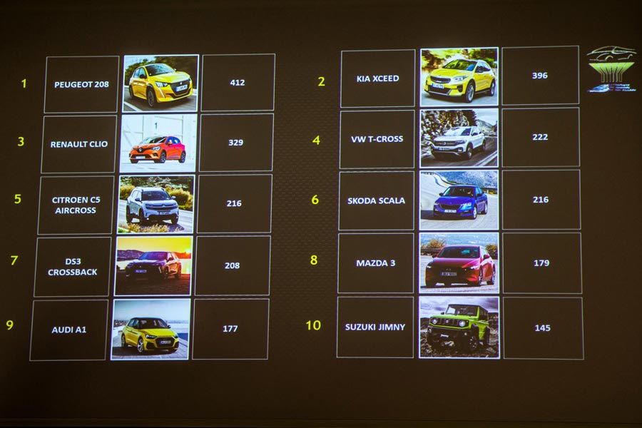 Μετά την καταμέτρηση των ψήφων νικητής και «Αυτοκίνητο του 2020» αναδείχθηκε το Peugeot 208 με 412 βαθμούς.