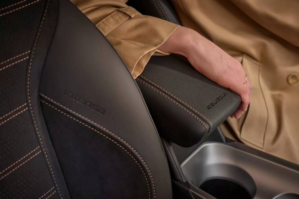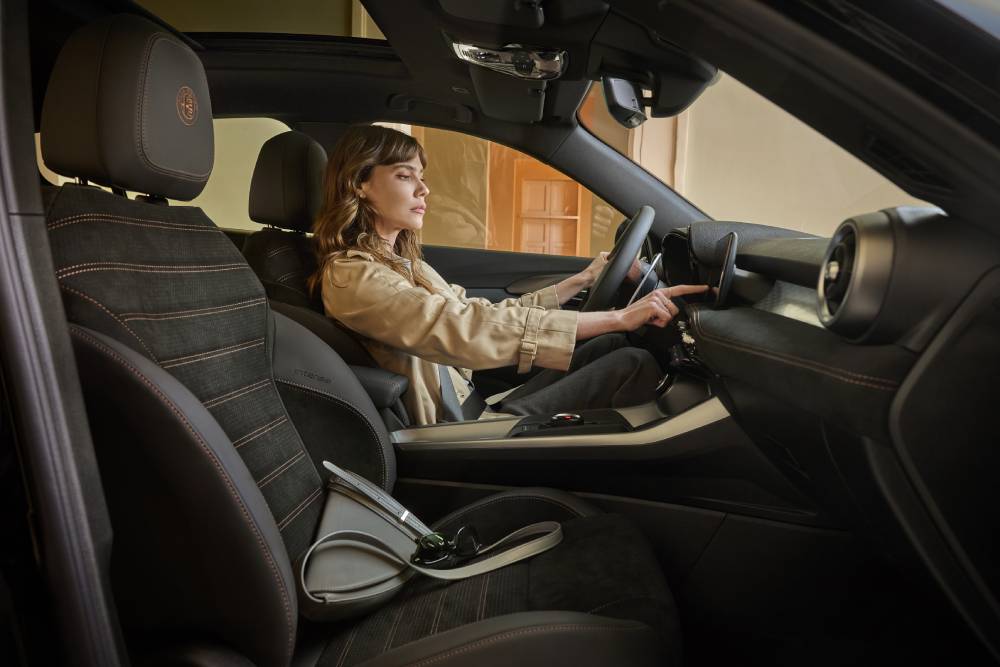 Στο εσωτερικό συναντάμε μαύρες δερμάτινες επενδύσεις για τα καθίσματα με χρυσαφί λεπτομέρειες, συν το ανάλογο κέντημα στα προσκέφαλα. Η κόκκινη ραφή επεκτείνεται στο ταμπλό, την κεντρική κονσόλα και το εσωτερικό των θυρών, το ηχοσύστημα είναι της Harman Kardon με 14 ηχεία, ενώ αποκλειστικά για την Tonale Intensa υπάρχει εφέ φύλλου χρυσού στο φωτιζόμενο ένθετο του ταμπλό.