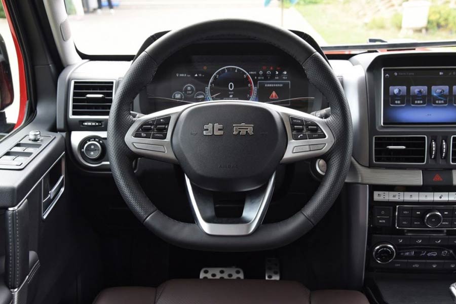 Οι πιο σημαντικές αλλαγές που το διαφοροποιούν το μήκους 4.765 χλστ. αμάξωμά του είναι τα φωτιστικά σώματα εμπρός και πίσω, αλλά και η μάσκα. Στην καμπίνα του BAIC BJ80 οι ευθείες γραμμές και οι επίπεδες επιφάνειες παραπέμπουν στην G-Class, όπως και ορισμένα χειριστήρια. Στον εξοπλισμό του περιλαμβάνονται ζάντες αλουμινίου 20 ιντσών, ψηφιακός πίνακας οργάνων, σύστημα πολυμέσων, όλες οι ηλεκτρικές ευκολίες κ.λπ.
