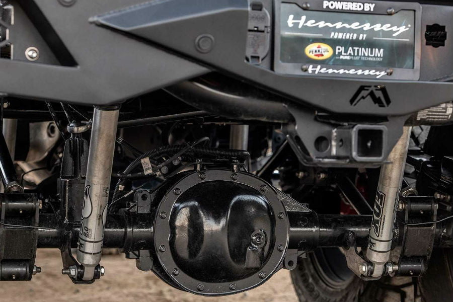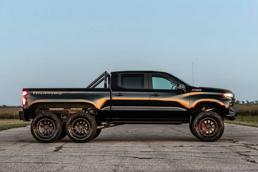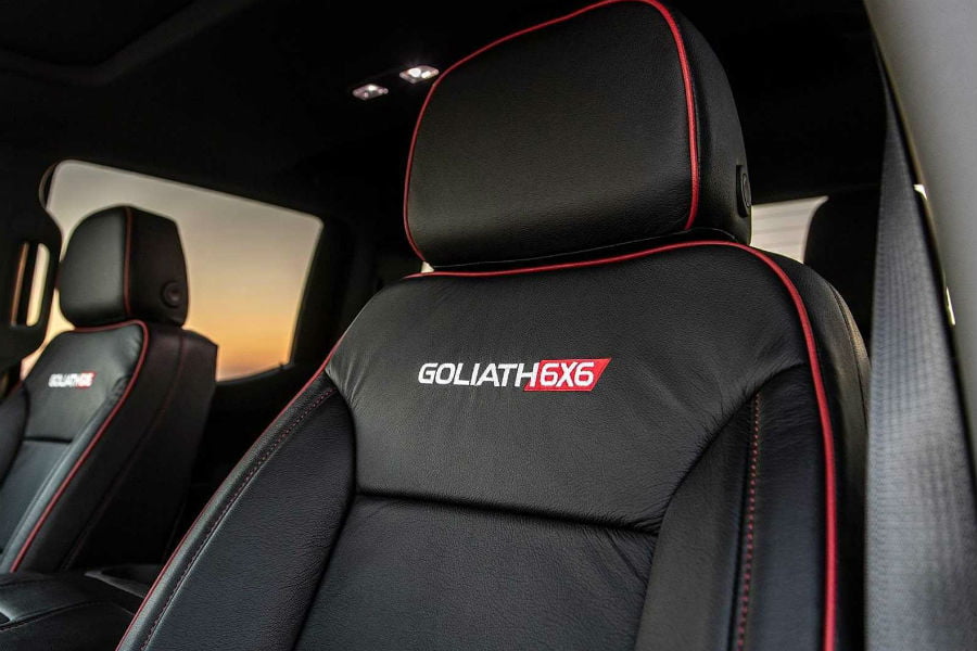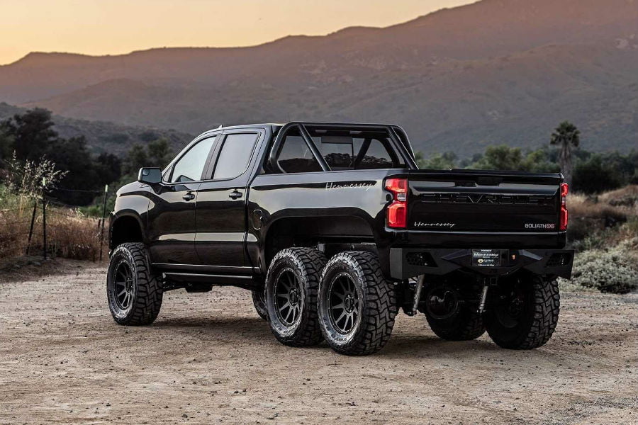 Όμως το δημιούργημα του Hennessey ξεπερνά τα όρια της λογικής, αλλά και της φαντασίας. Καταρχάς βασίζεται στο Chevy Silverado Trail Boss, το πιο «σκληρό» και ικανό διπλοκάμπινο που προσφέρει ο Αμερικανός κατασκευαστής. Όμως για τον Τεξανό βελτιωτή δεν ήταν αρκετά ούτε τα 32 εκατοστά της απόστασης από το έδαφος, ούτε οι δυο άξονες, ούτε -κυριότερα- τα 420 άλογα του πληθωρικού V8 των 6.2 λίτρων. Οπότε πήρε το Silverado, το μετέτρεψε σε τριαξονικό, τοποθέτησε τον κομπρέσορα του βελτιωτικού πακέτου HPE700 και δημιούργησε το εξωπραγματικό Goliath 6×6.