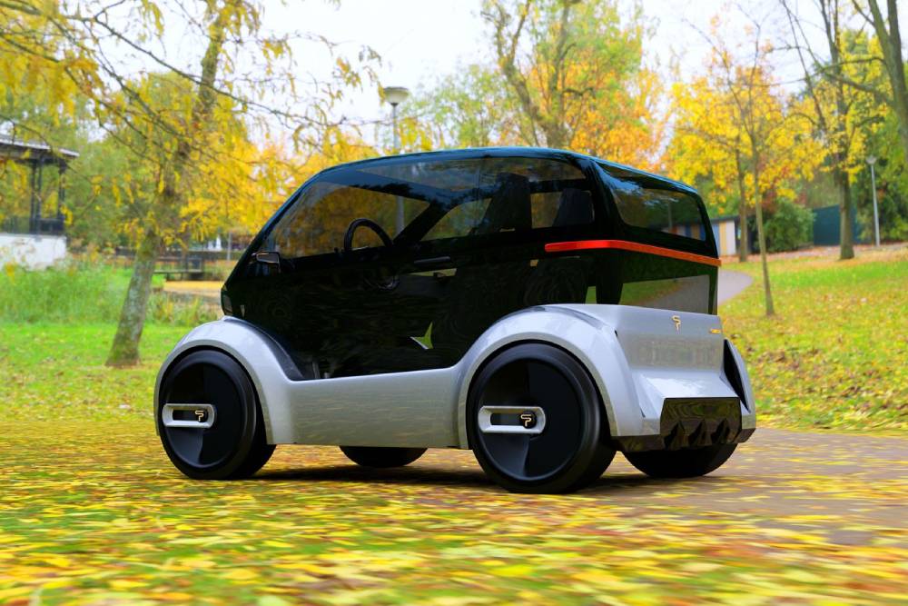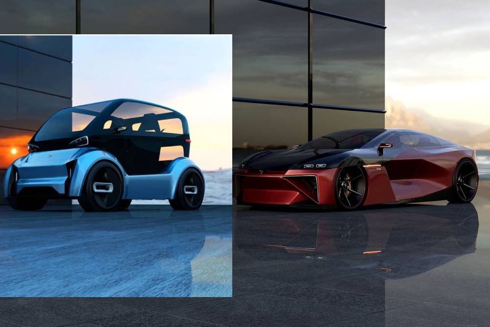 Το πρώτο είναι ένα ηλεκτρικό διθέσιο πόλης, στα πρότυπα των Renault Twizy και Citroen Ami, μόνο που εδώ προσφέρει μέχρι 220 άλογα στον οδηγό. Οι πληροφορίες είναι ελάχιστες, οπότε περιοριζόμαστε σε αυτό που βλέπουμε: μια λιλιπούτεια κατασκευή, που θυμίζει κάψουλα, το μεγαλύτερο μέρος της είναι διάφανο, η σχεδίαση φουτουριστική και στο πίσω μέρος ξεχωρίζει η παρουσία διαχύτη.